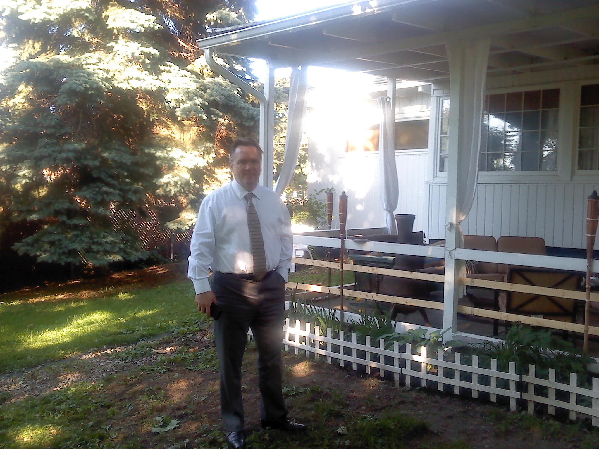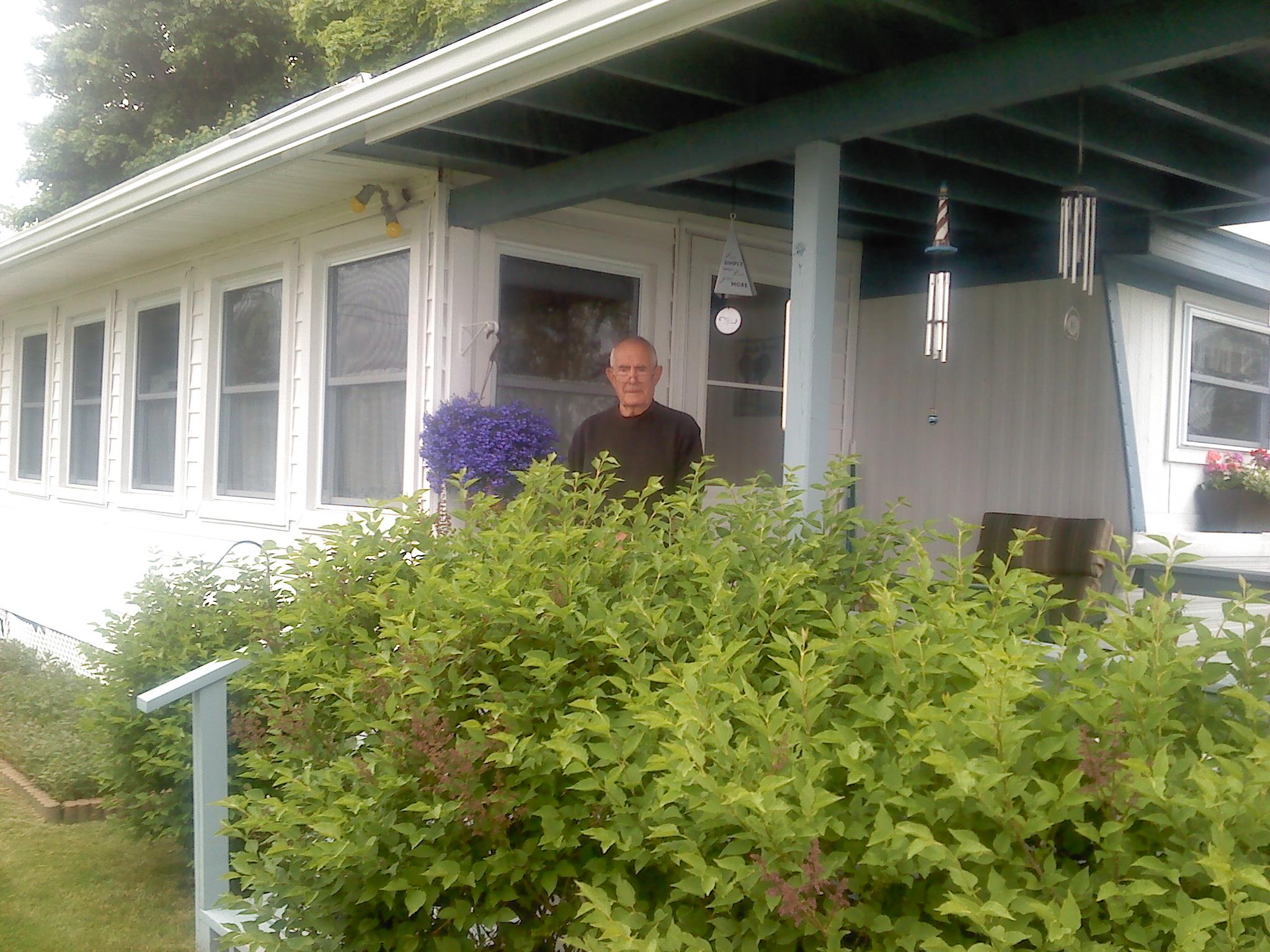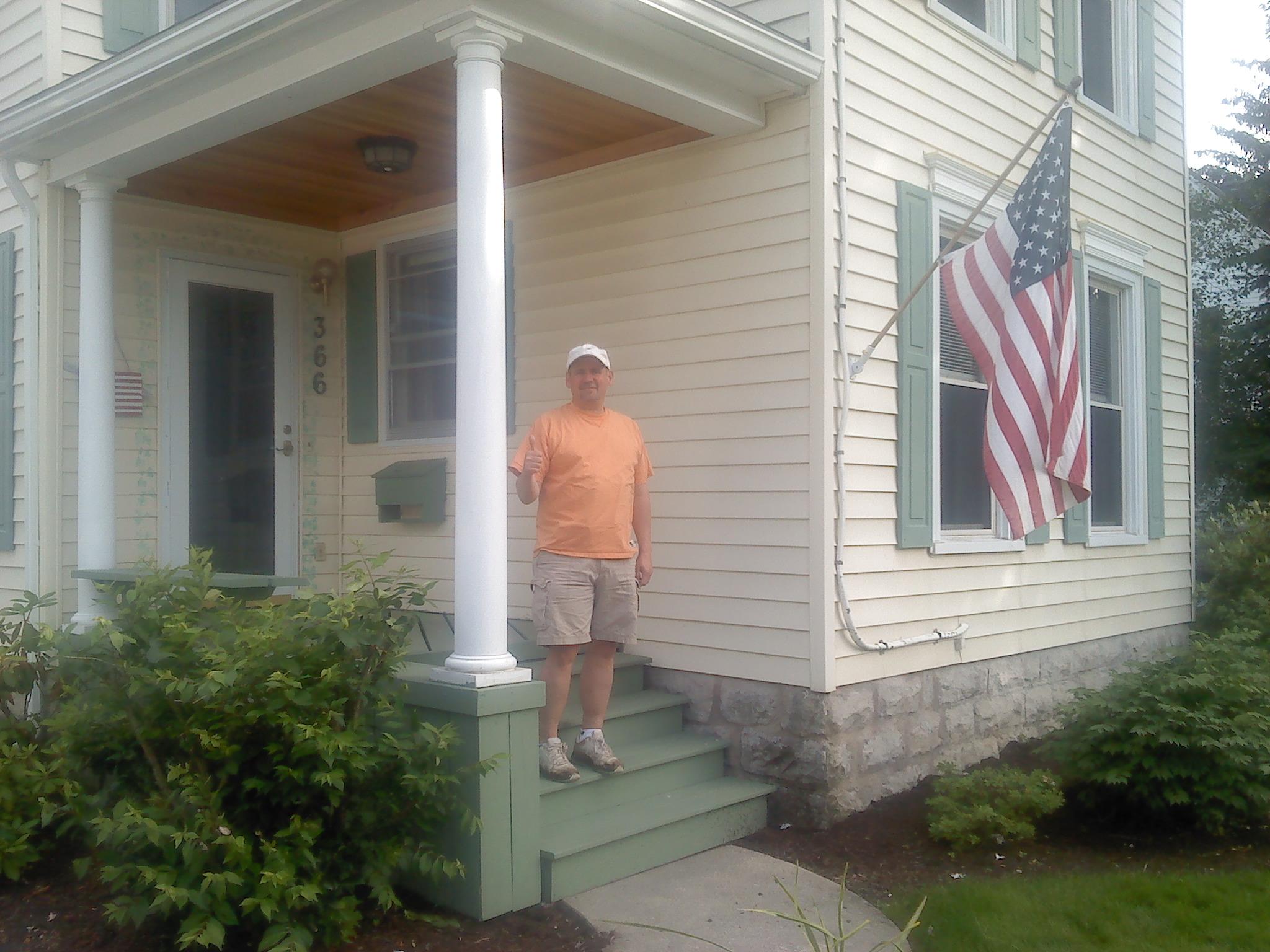 This satisfied customer never left his porch! He watched us make CUSTOM AMERICAN GUTTERS!